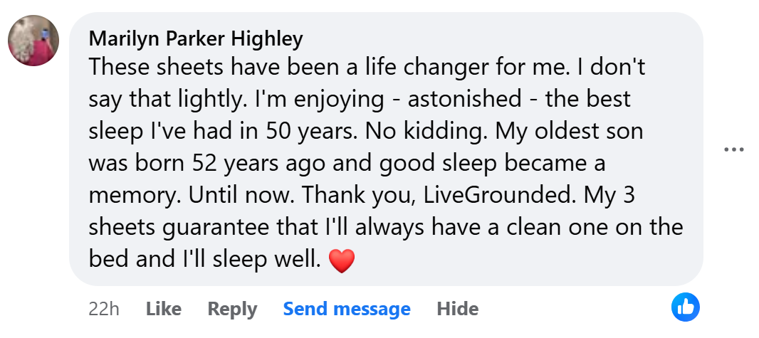 Gina was at her wit’s end. Her sleep struggles were so bad that her doctor was recommending surgery and sleep deprivation therapy—costing thousands. She was desperate for relief. But after switching to LiveGrounded Earthing Sheets, she finally experienced deep, uninterrupted sleep—and got her life back, without invasive treatments.